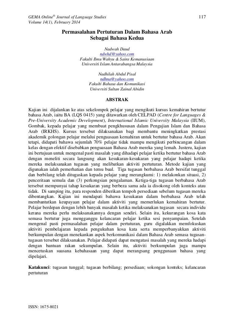 Permasalahan Pertuturan Bahasa Arab Sebafai Bahasa Kedua